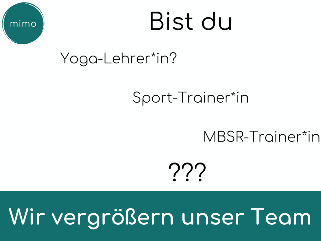 Wir möchten unsere Angebote laufend ausbauen, daher freuen wir uns, unser Team zu vergrößern. Bist du Sport-Trainer*in, Yoga-Lehrer*in oder Achtsamkeitsexpert*in? Melde dich bei uns!